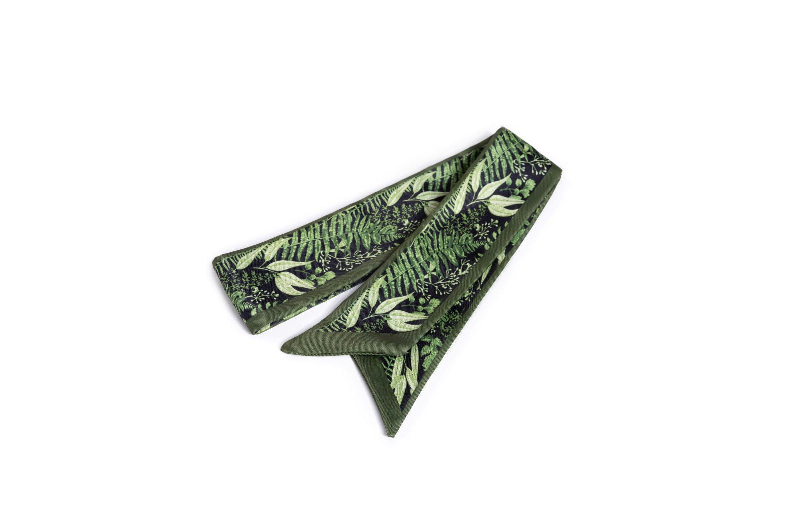 The Forest Muse Bag Scarf is inspired by nature’s poetry and crafted for modern elegance. With lush green foliage on a deep base, it infuses your handbag with earthy sophistication. Lightweight and fluid, it softens your bag’s structure while adding a natural richness that feels timeless and personal.