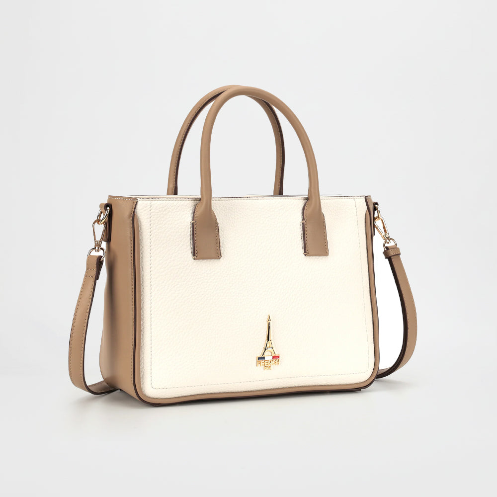 Selene, a name cherished in Belgium for its elegance and femininity, embodies quiet confidence and modern style. This structured bag is crafted in a refined ivory and beige palette, balanced with sleek dual handles and polished gold accents for a touch of sophistication. Designed with a spacious interior and a versatile silhouette, Selene carries the perfect blend of beauty and functionality, making it a statement piece for both everyday wear and special occasions.