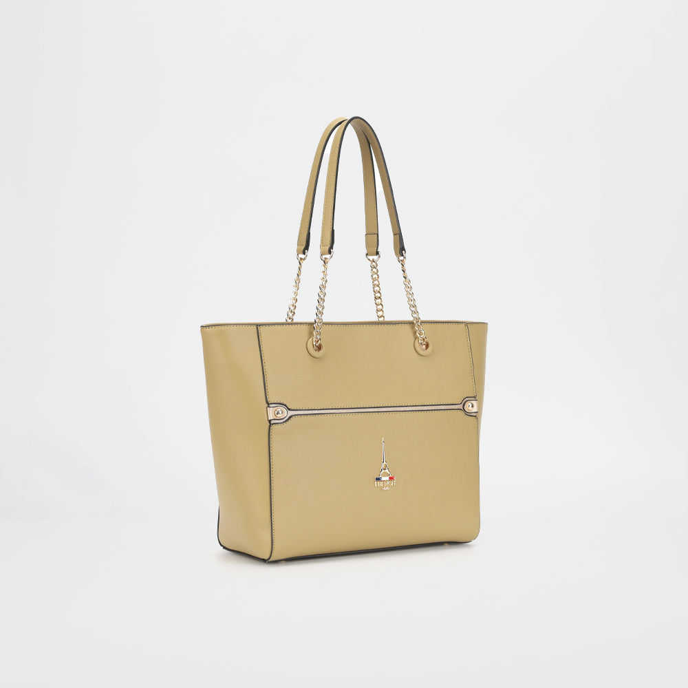 Zora, named after the Croatian word for dawn, captures the promise of new beginnings and quiet strength. This structured tote in a refined mustard-beige shade is designed with dual chain-linked handles that bring a touch of modern glamour. Spacious yet sleek, it blends practicality with sophistication, making it the kind of bag that carries both your essentials and your confidence through every part of the day.
