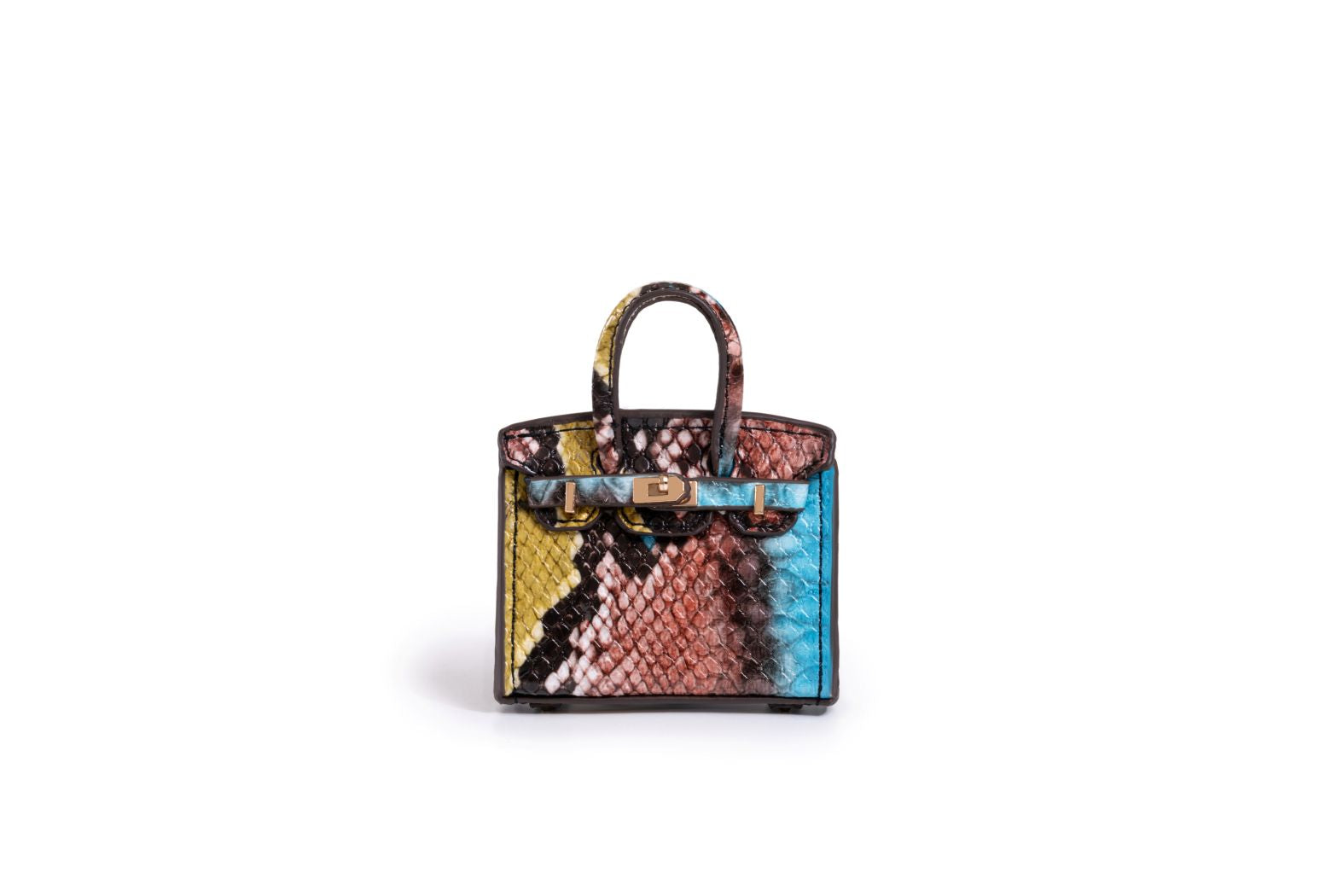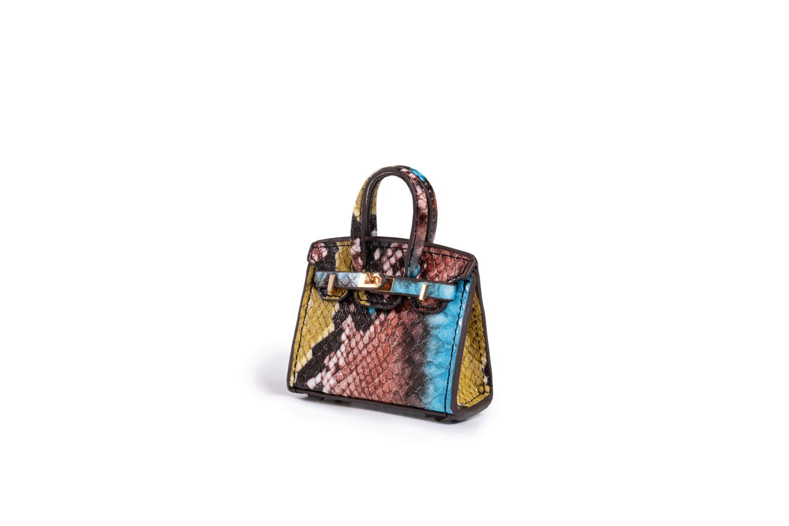 Compact, colorful, and commanding, the Exotica Mini Icon is designed to add flair to your favorite bag. Crafted in a bold multicolor snakeskin finish with polished gold detailing, it’s the perfect statement accent for days when your carry deserves a little extra spotlight.