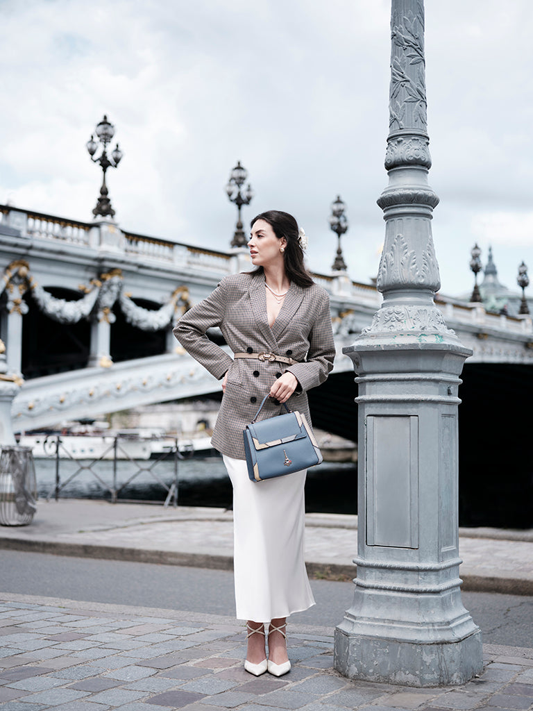 Fortessa, inspired by the European word for strength, celebrates women who carry confidence as effortlessly as style. Its structured silhouette in refined blue with beige and grey accents reflects modern sophistication, while the top handle and detachable strap offer versatile wear. Spacious yet sleek, Fortessa is more than a satchel, it is a statement of resilience and contemporary elegance.