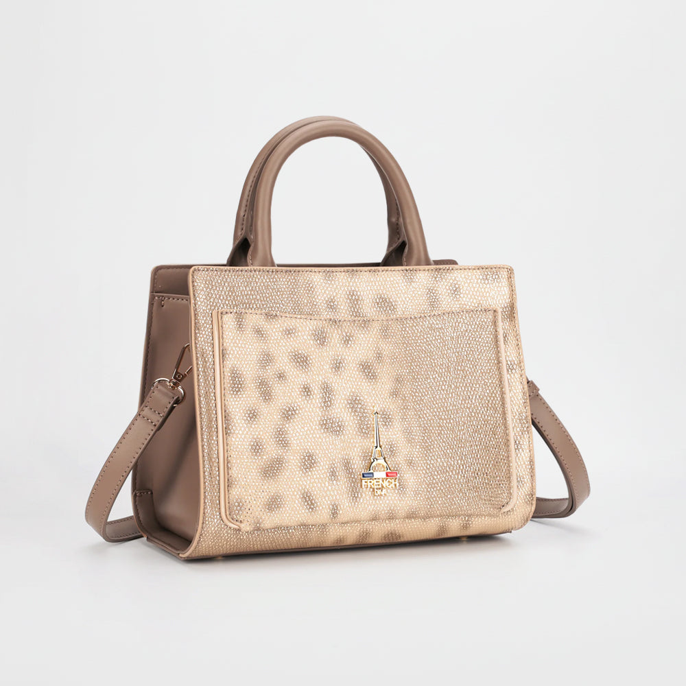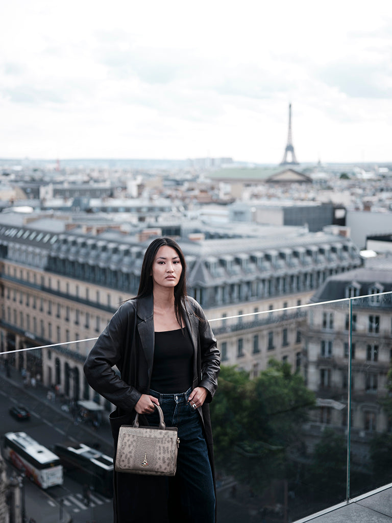 Natia, meaning hope in Georgia, is a statement of strength wrapped in style. Its structured form, refined detailing, and modern print make it a piece that feels both confident and chic.