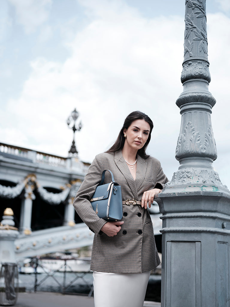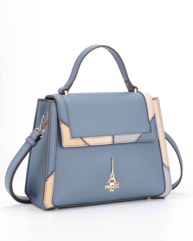 Fortessa, inspired by the European word for strength, celebrates women who carry confidence as effortlessly as style. Its structured silhouette in refined blue with beige and grey accents reflects modern sophistication, while the top handle and detachable strap offer versatile wear. Spacious yet sleek, Fortessa is more than a satchel, it is a statement of resilience and contemporary elegance.