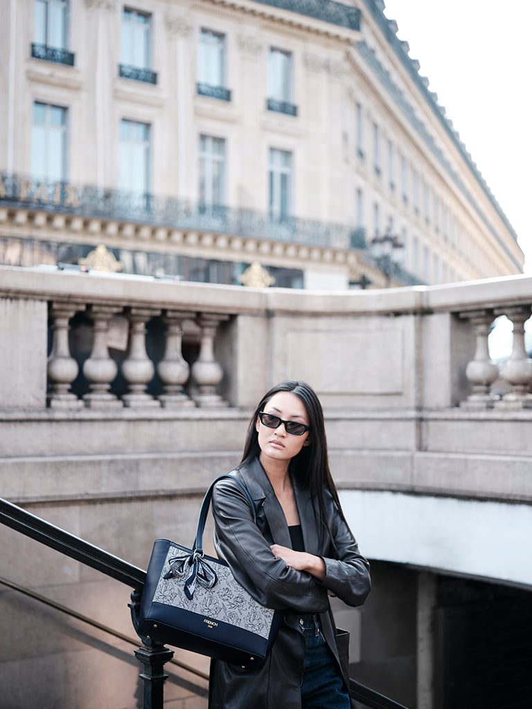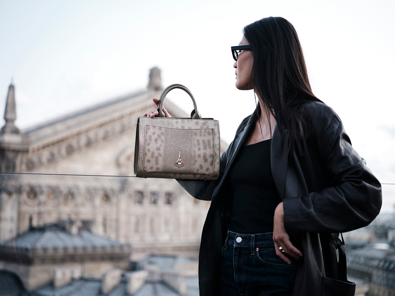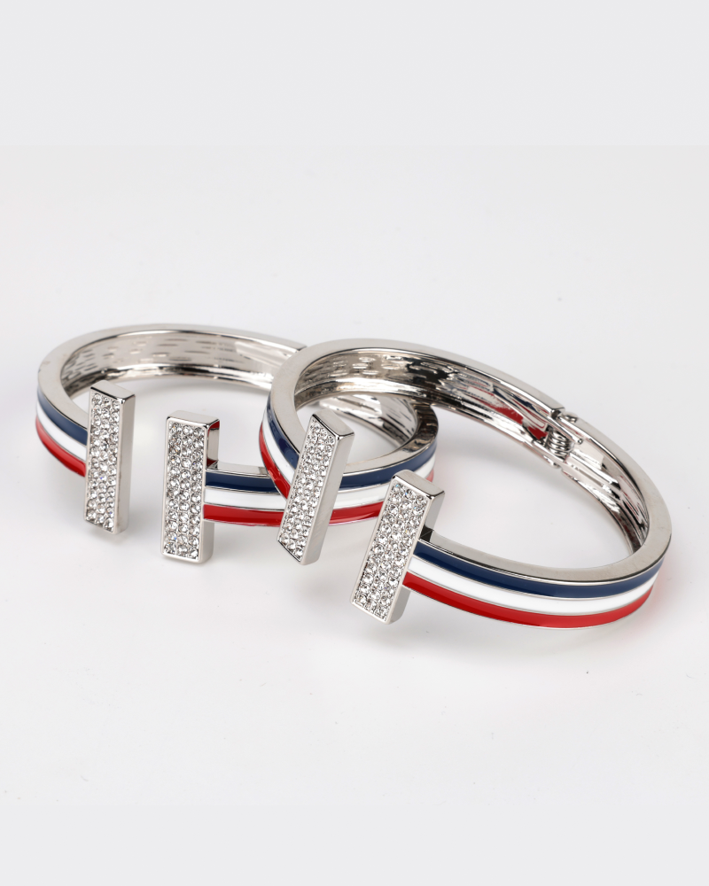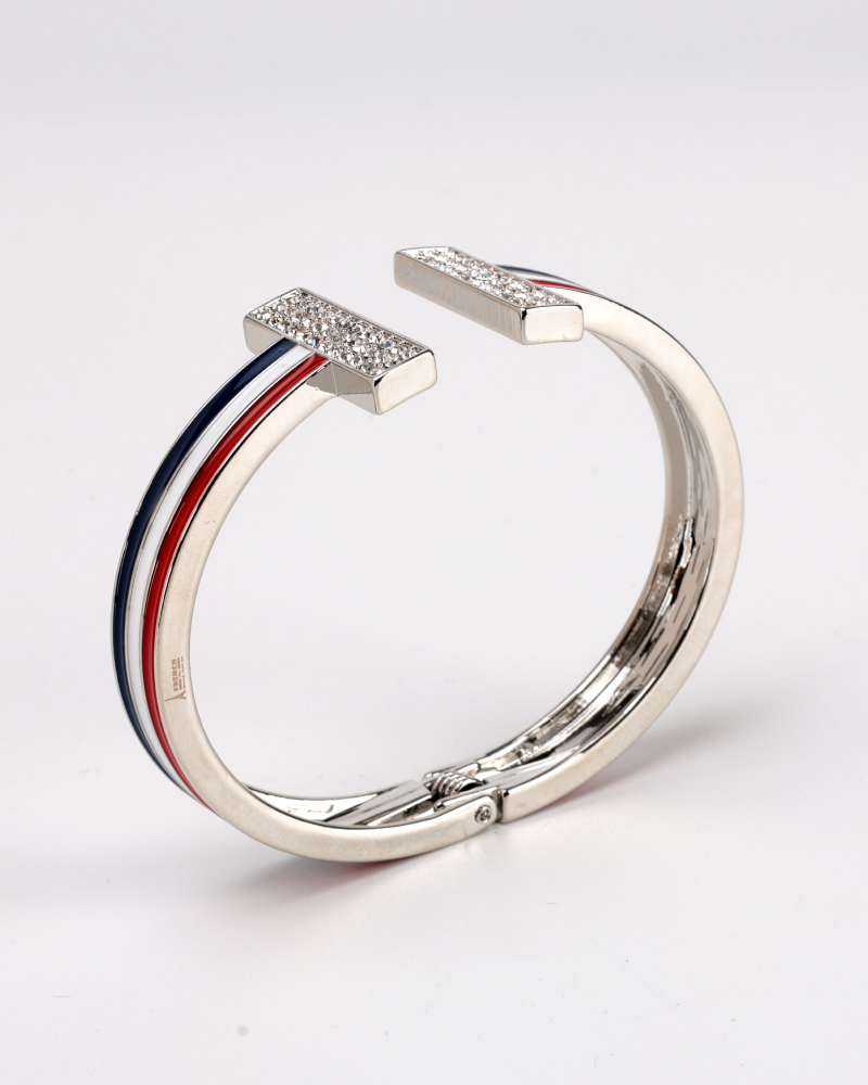 The Opéra Bag Holder Cuff is a polished essential for every handbag lover. Designed in gleaming silver with crystal-studded ends and sleek enamel detailing, it adds a refined touch while serving a smart purpose, to hold your bag securely when dining or traveling. Slip it onto tables, rails, or chairs to keep your bag safe, elevated, and always within reach. A true reflection of function meeting French sophistication.