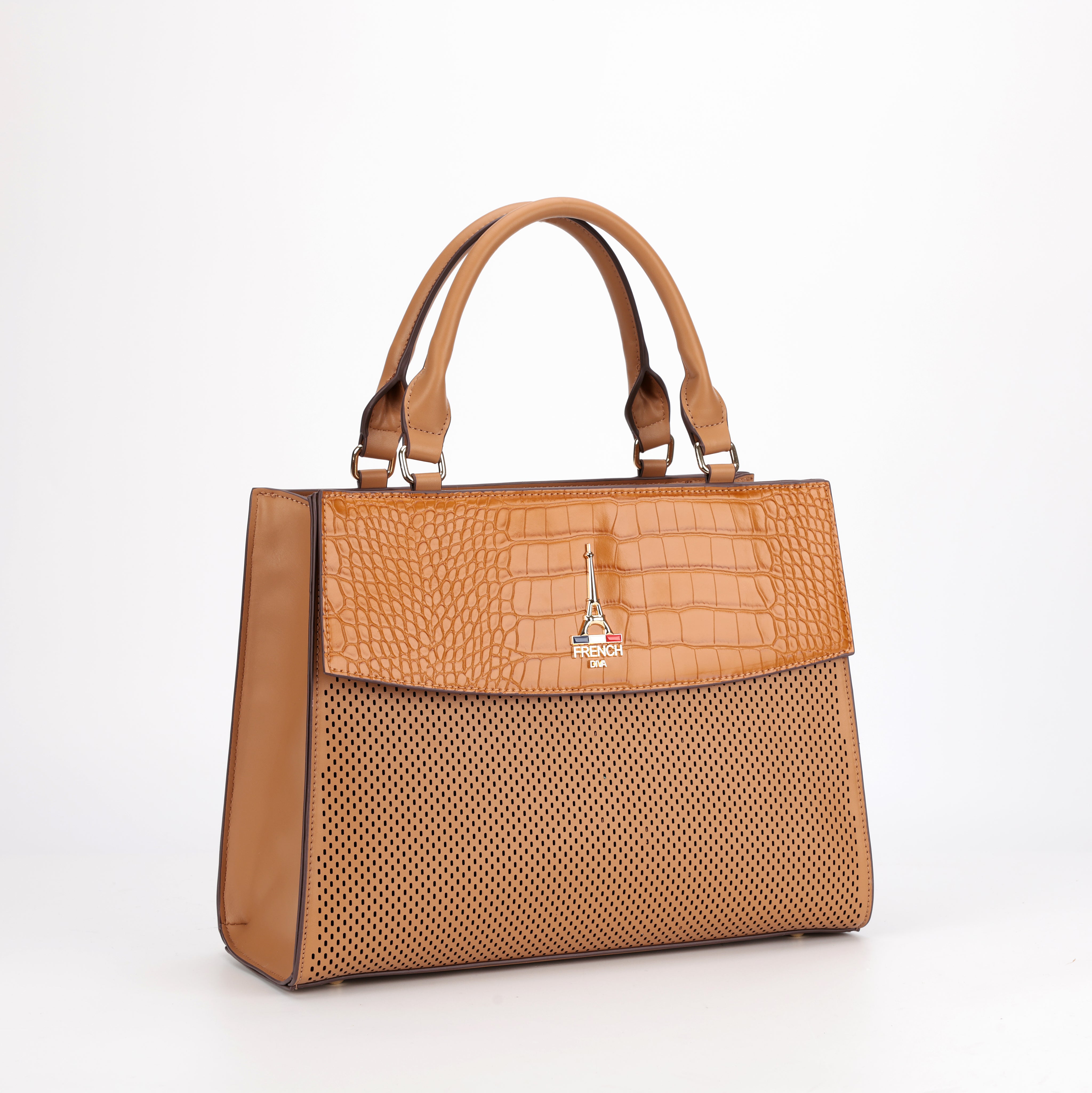 Amélia, rooted in the French word for striving, reflects the beauty of ambition carried with grace. With its structured tan form, croc textured flap and polished gold accents, it brings a touch of Monaco’s effortless glamour to every occasion.
