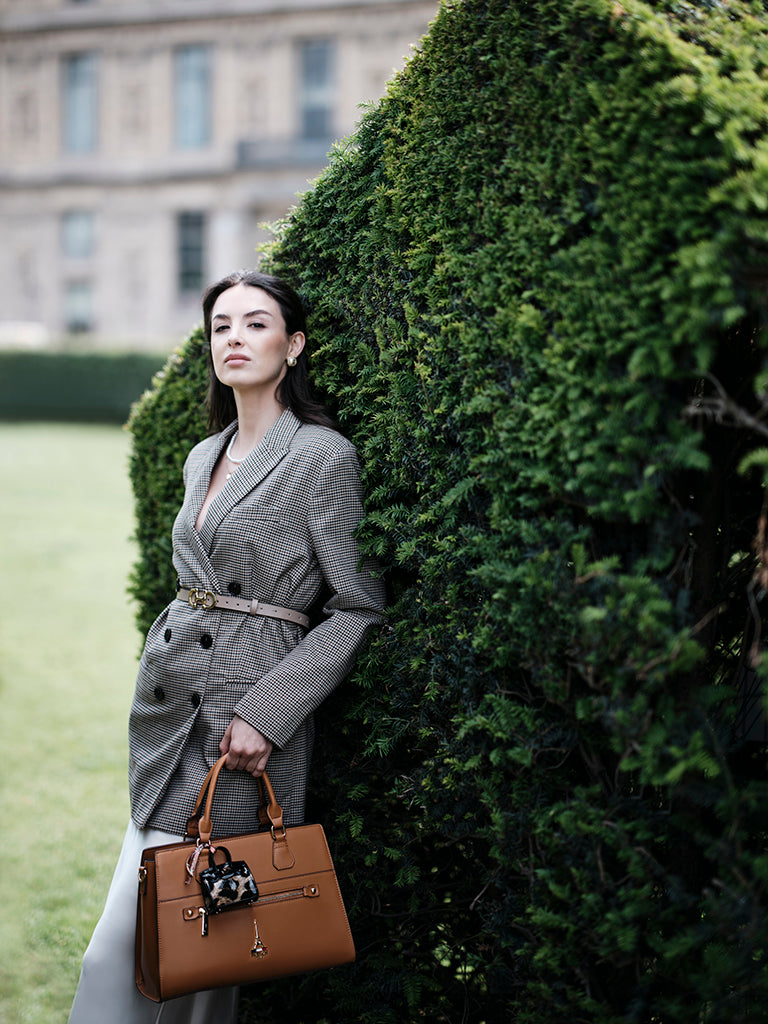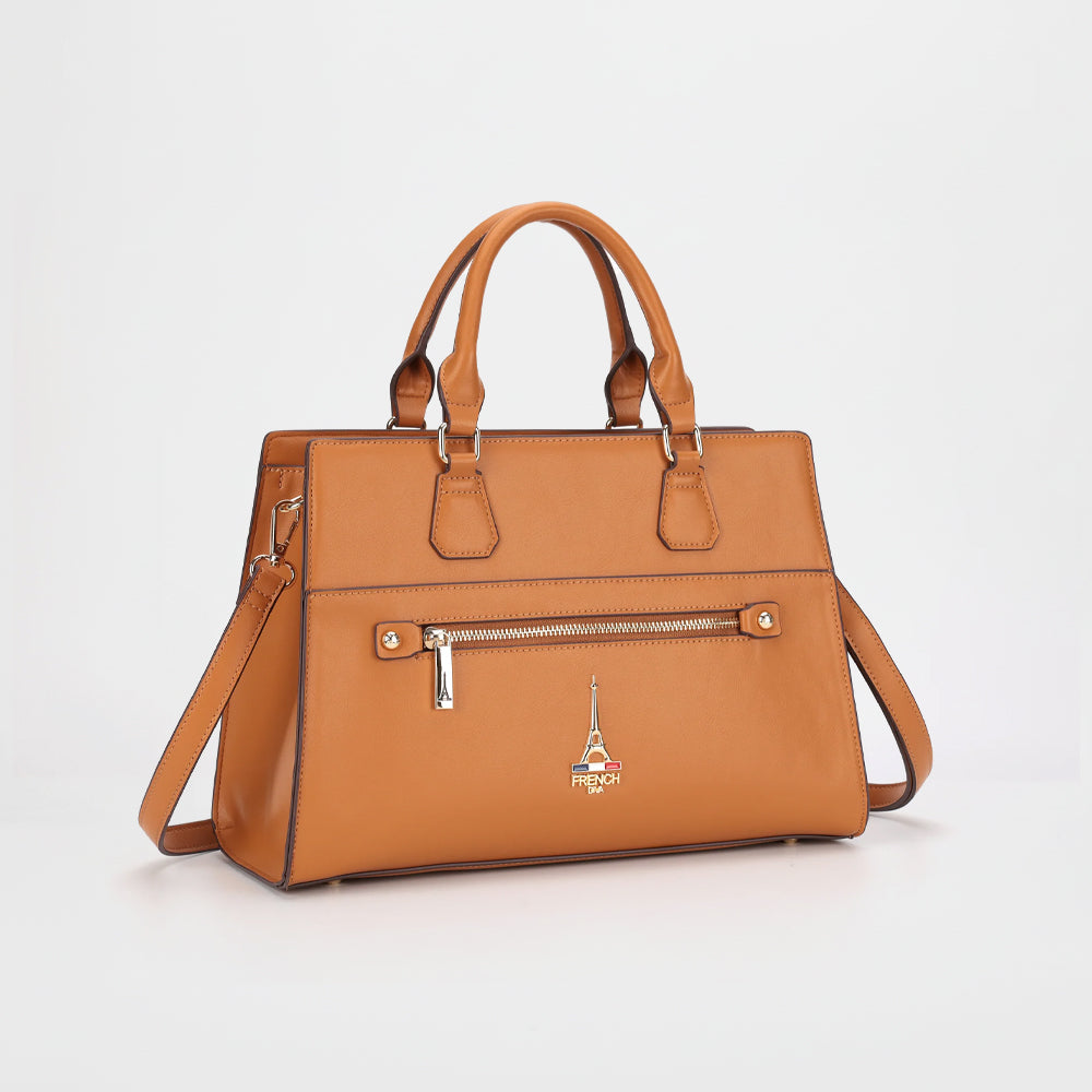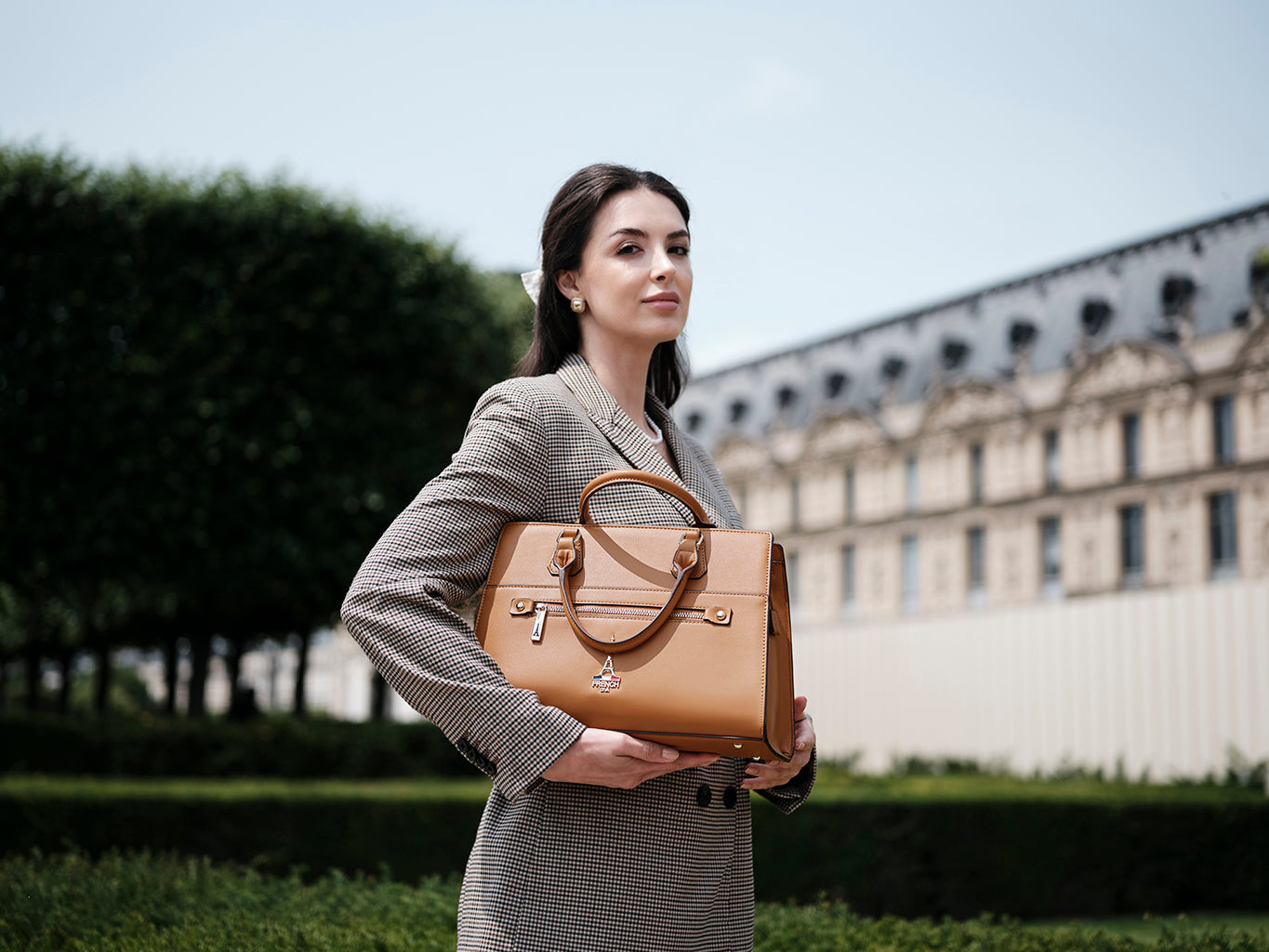 Aurea, meaning golden, reflects the timeless sophistication of Dutch elegance with a modern touch. Sleek and structured in rich tan, it is detailed with polished gold hardware and a detachable strap that offers both refinement and versatility. Designed for effortless sophistication, Aurea is a true symbol of style that shines in every setting.